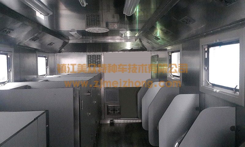 生活保障車上設置了電氣裝置(移動電源)、空調裝置、供水裝置、照明裝置、影視裝置、能夠適應高溫或低溫惡劣環(huán)境,適應在野外無補給依托情況下從事軍事、勘探、科技試驗的生存環(huán)境。